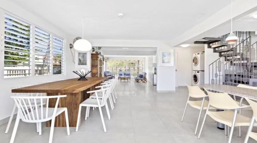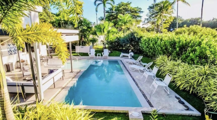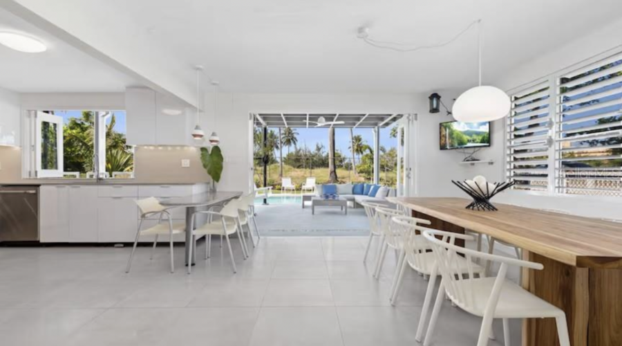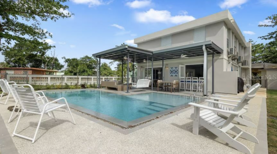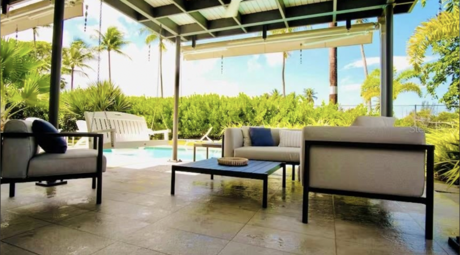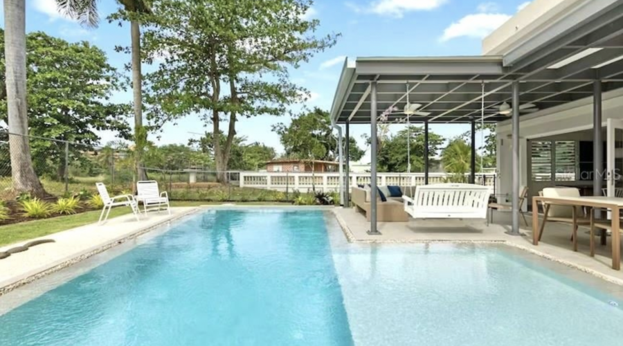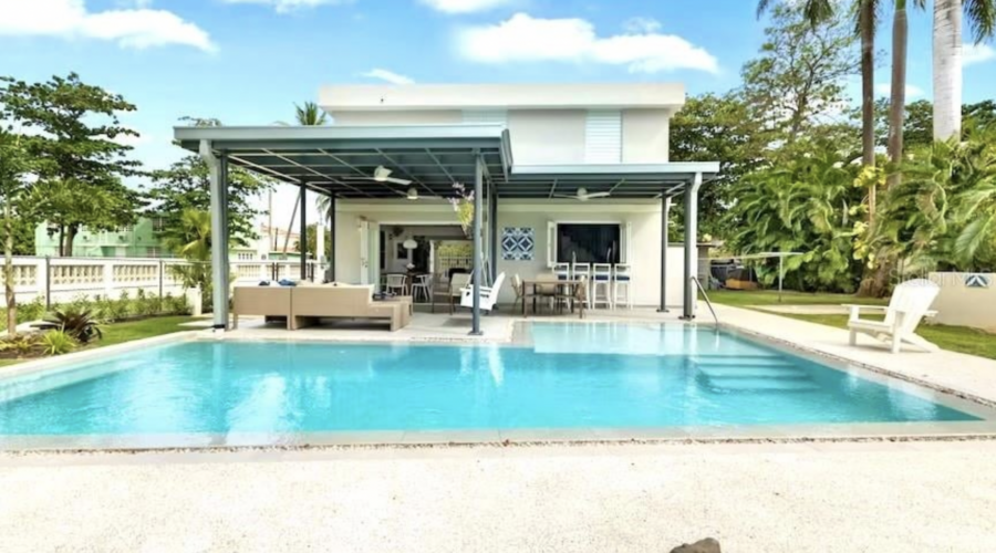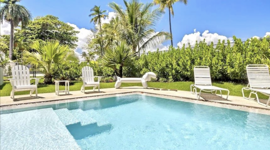 The property features a totally renovated 5 bedroom house with an open layout of the living and dining areas next to a custom made chef's kitchen, all flowing into the covered terrace and fabulous heated large salt water pool next to the perfectly designed pickle ball court. The home is surrounded by beautifully landscaped gardens and perfectly located in a cul de sac, adjacent to the old Cerromar Hotel (which is now owned by the Dorado Beach resort).