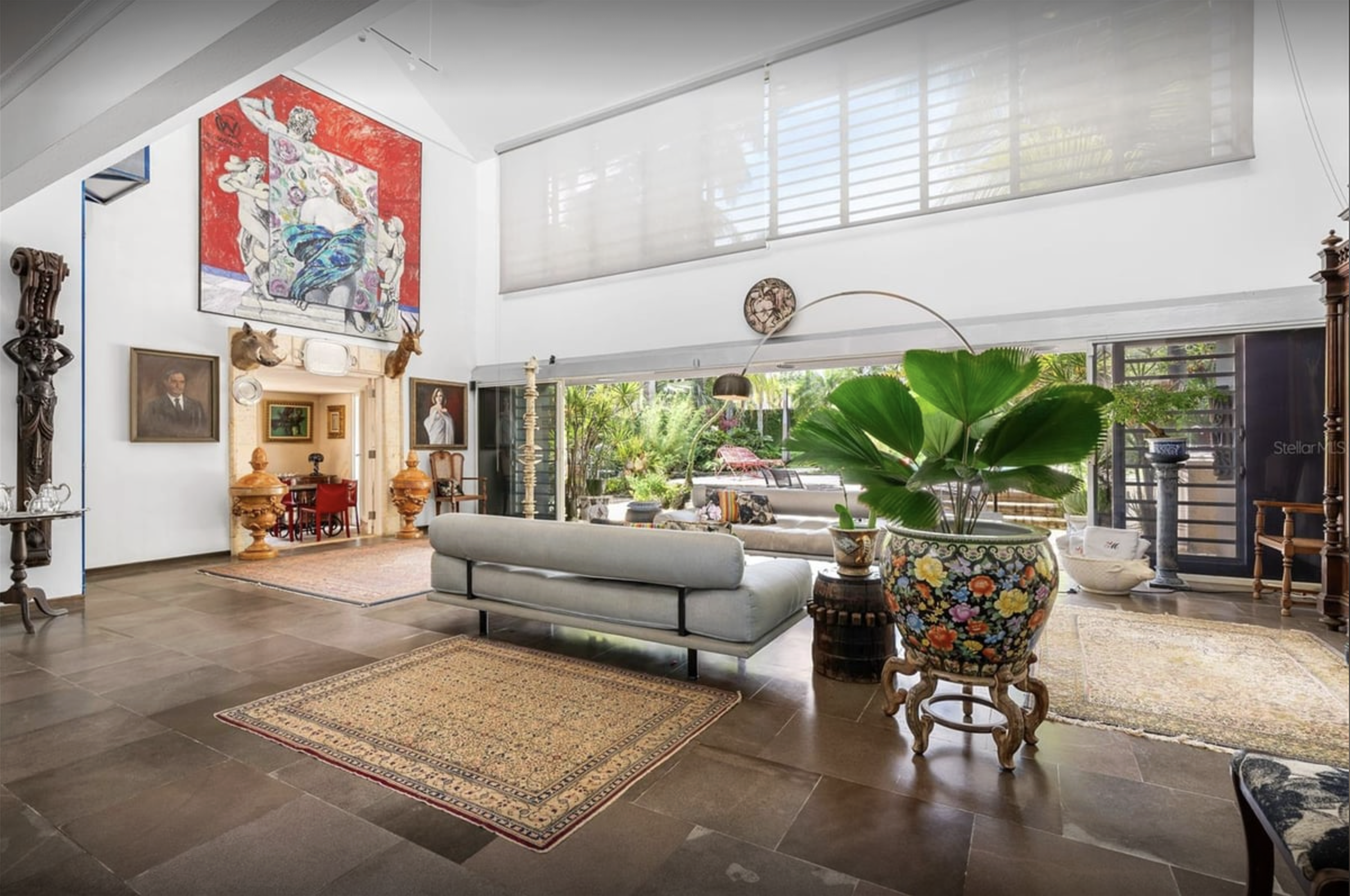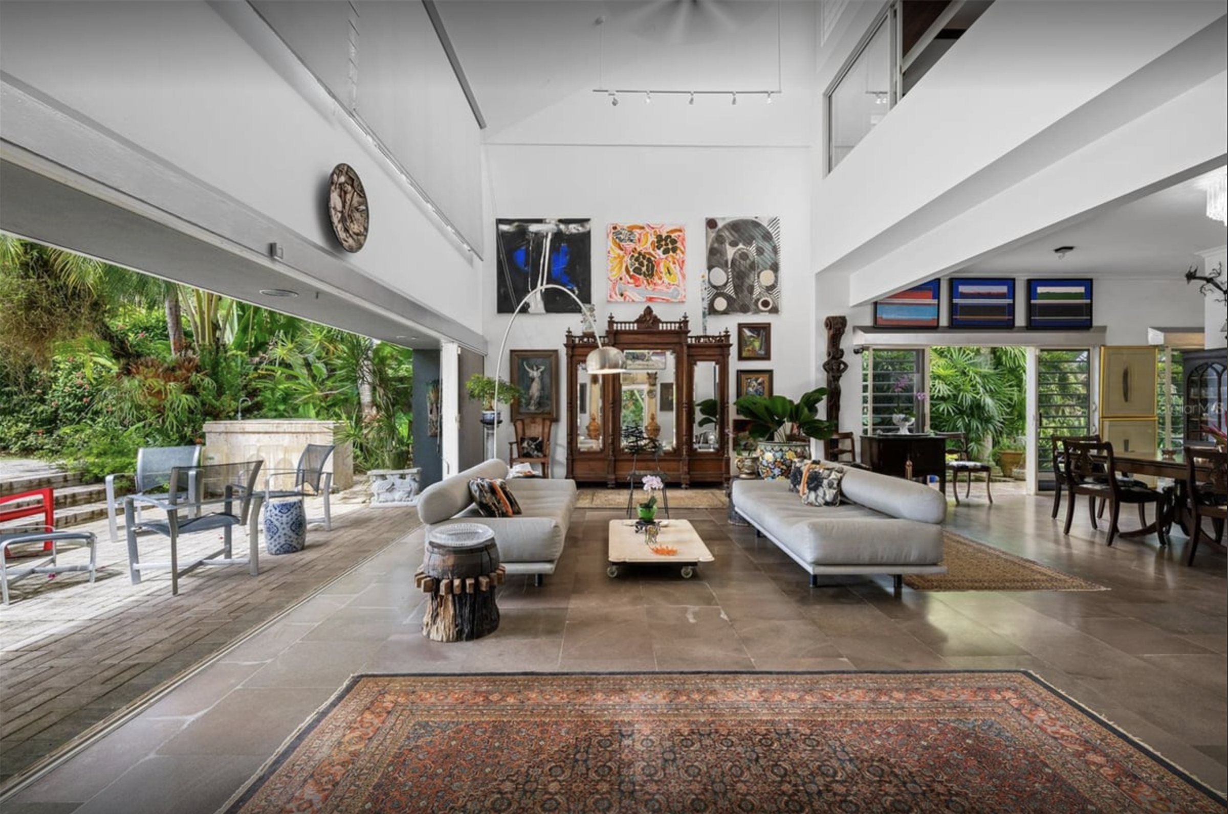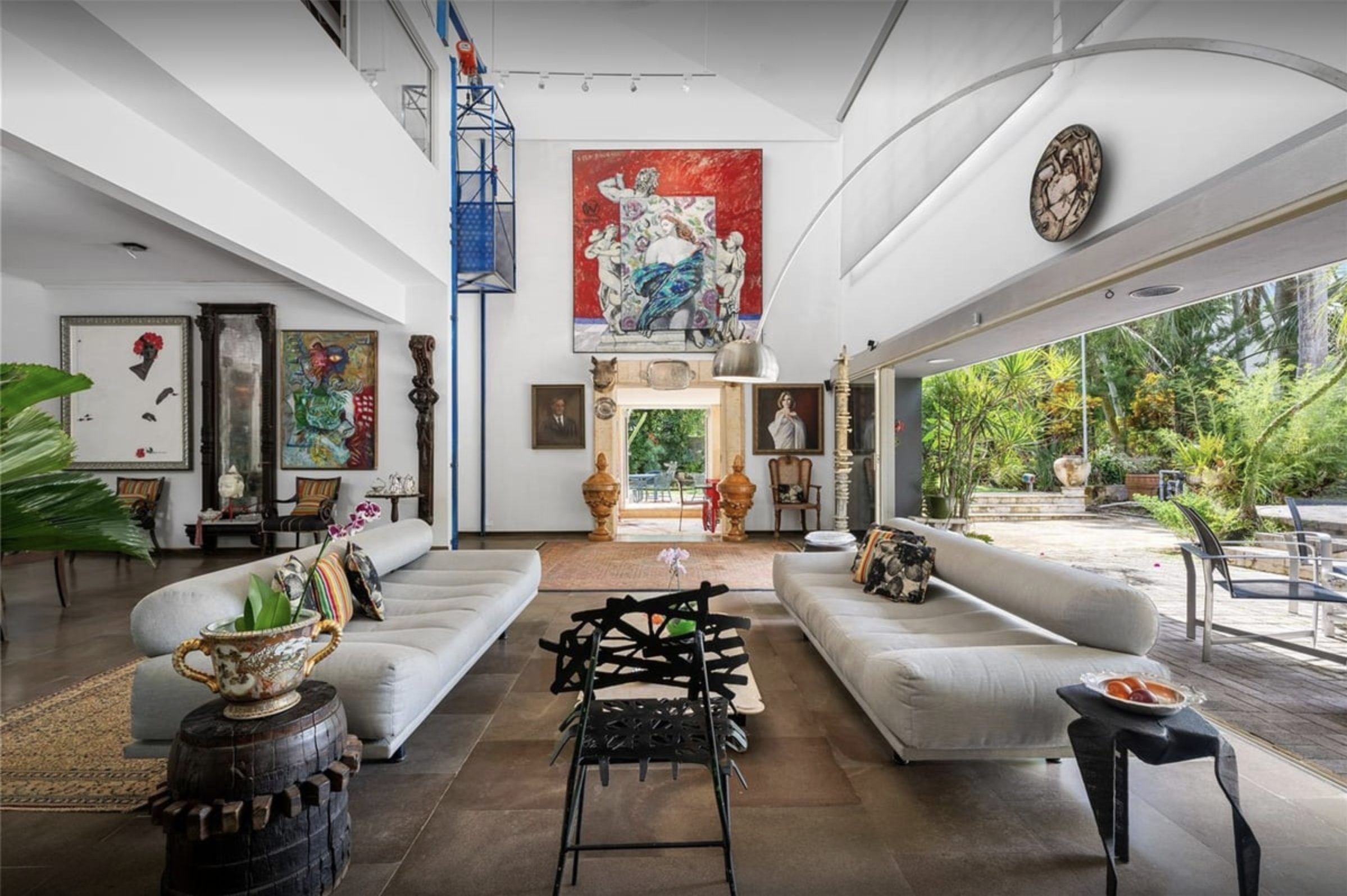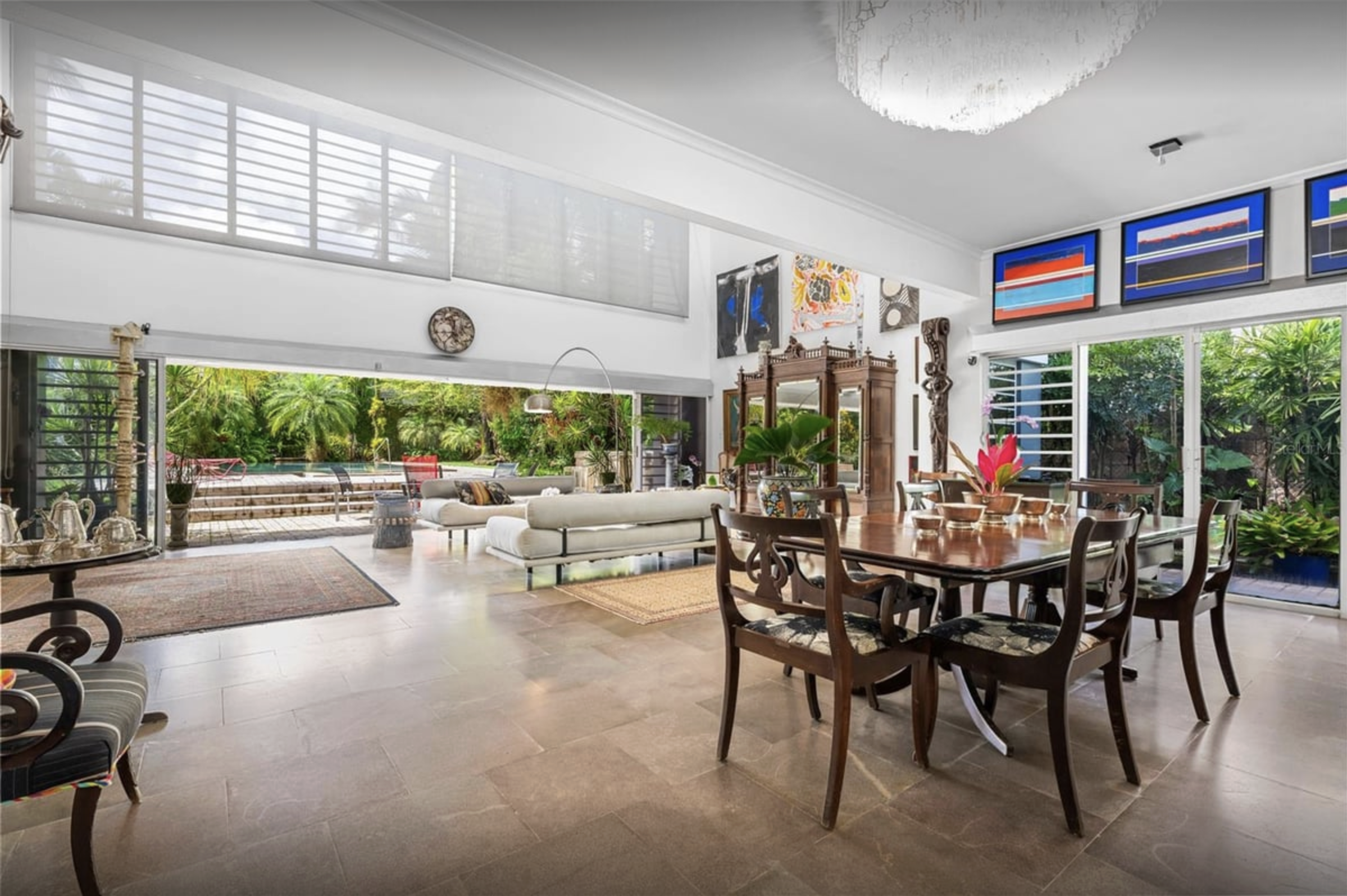 This thoughtfully designed home features an open-concept floor plan perfectly integrating the ample dining area to the majestic Great Room with its soaring double height cathedral ceilings, all seamlessly flowing to the 3 terraces surrounding it in every corner. The perfect flow between the indoor and outdoor living areas connects all three terraces to the 2 tranquil koi ponds and the striking infinity pool in the center, providing a peaceful and serene oasis, yet also ideal for hosting and entertaining large gatherings.