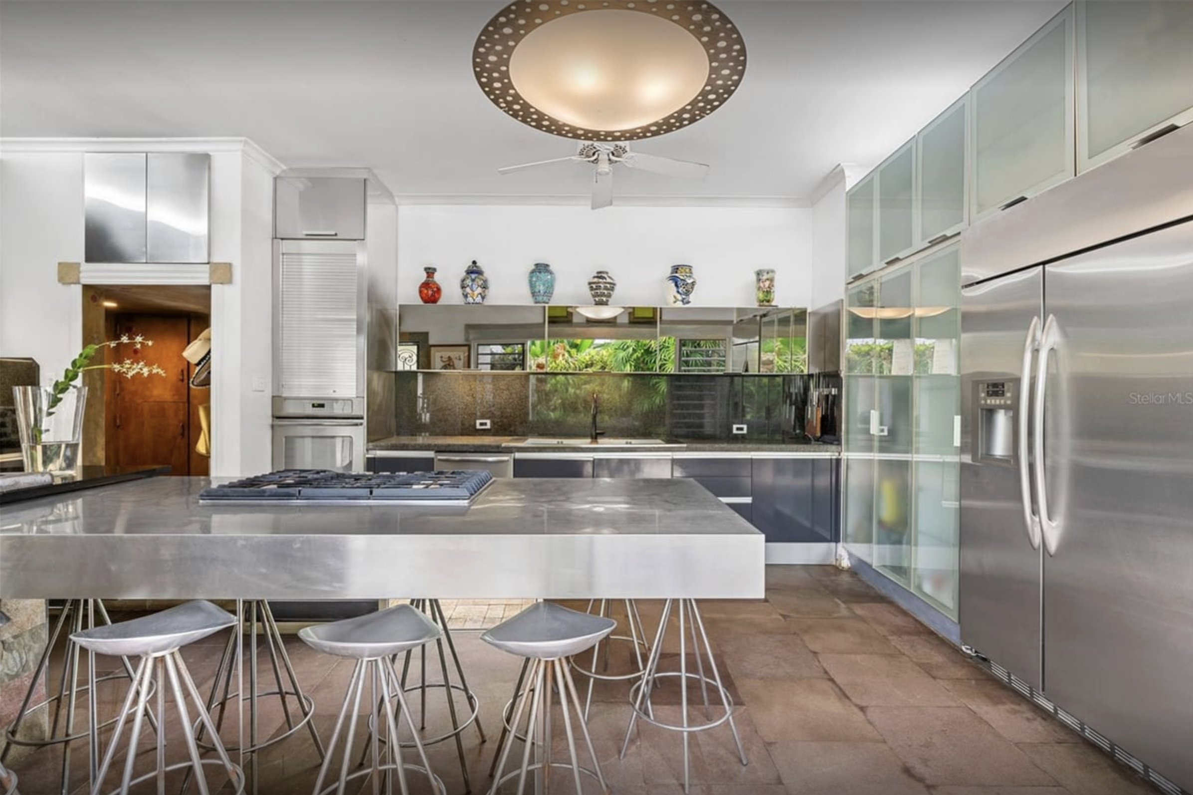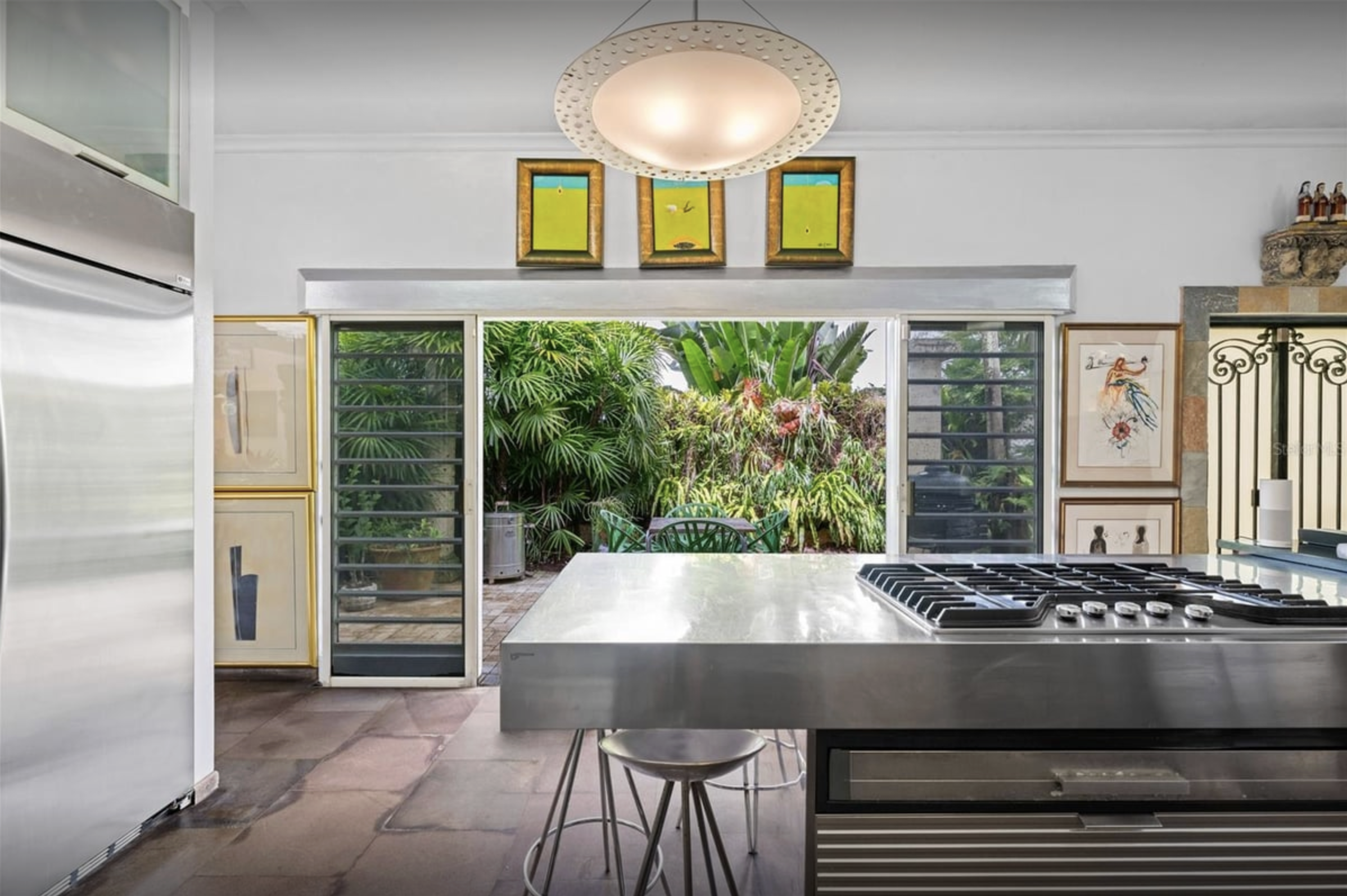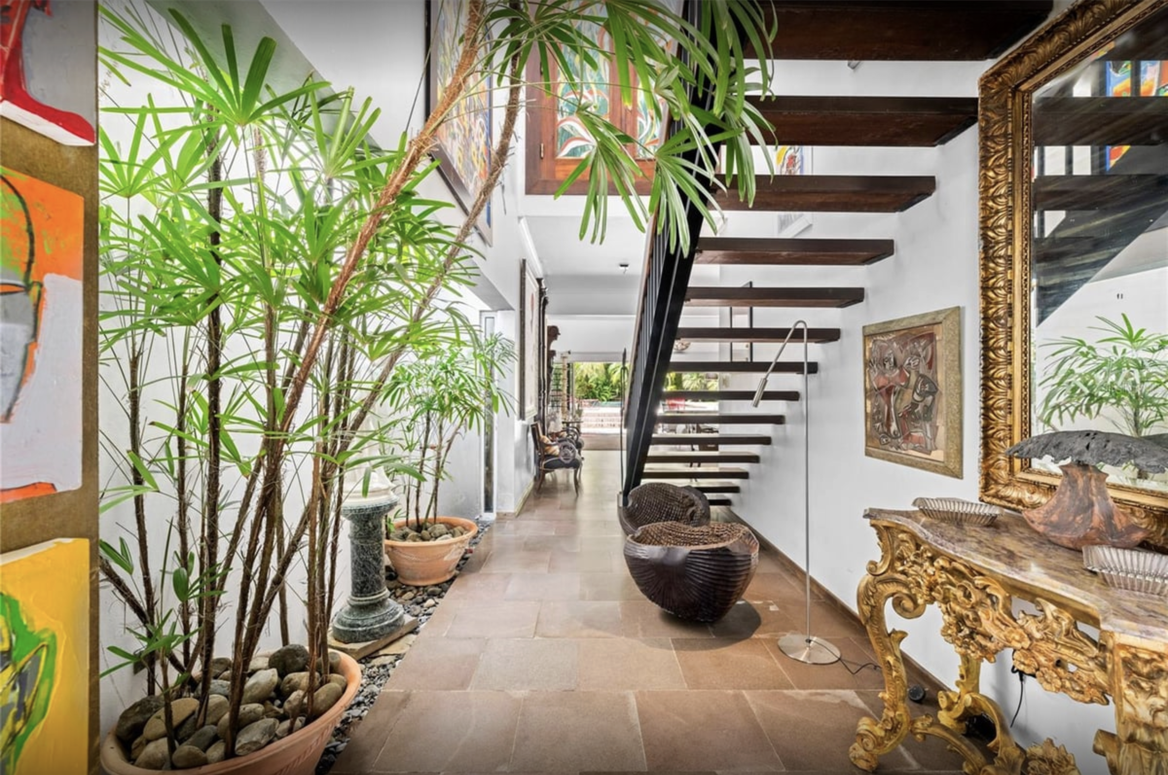 The chef's kitchen combines sleek finishes with functionality and opens to another terrace and small pond, making it ideal for intimate gatherings. The office features custom built-ins and faces another terrace with an oriental style pond filled with water lilies, adding a unique peaceful and inspiring work area to the room. All is complemented with more luxurious details such as abundant natural light, fresco paintings, a 1000 bottle wine cellar, stone floors, an elevator, stained glass windows, 2 car garage, a generator and a cistern.