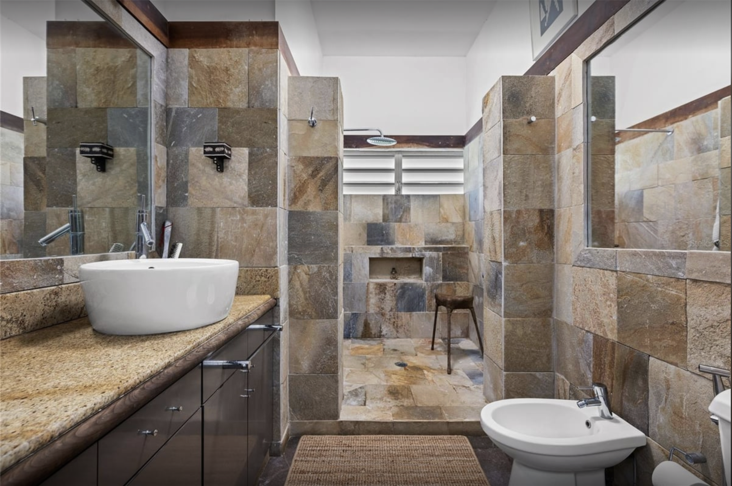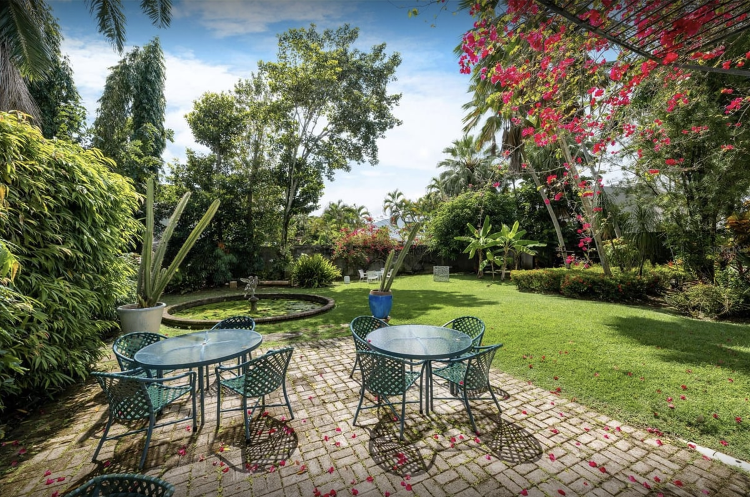 The home also boasts 3 bedrooms all with baths and a fourth bonus, or caretaker's bedroom also with a bath, a family room, a powder room and an office with a separate entrance overlooking the scenic gardens. The master bedroom has its own private terrace with an outdoor pool/spa also overlooking the lush beautiful gardens.